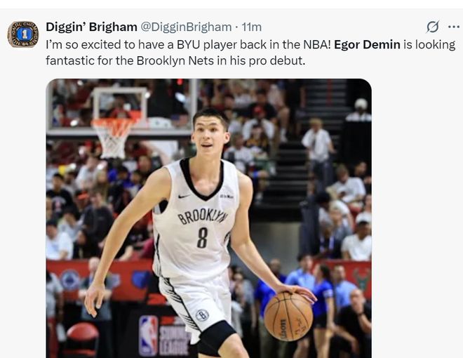 杨百翰大学:能看到杨百翰大学又有球员在NBA打球我感到非常兴奋,杰明在篮网的首秀发挥非常出色。