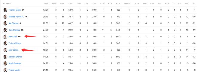 先发的一号位萨拉夫只有7中2+三分3中0,拿到8分7篮板4助攻,他的表现比杰明差太多了,杰明应该早一些深入先发,因为他就是有投篮的本-西蒙斯,这位俄罗斯天才少年必然会成为篮网的基石。