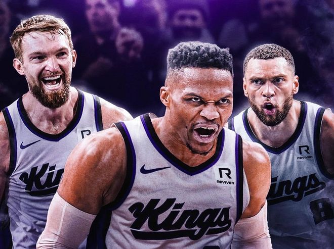 字母哥一如既往地强大,独砍26分+11篮板+8助攻,以点带面盘活全队,雄鹿全队6人得分上双。但问题在于,雄鹿队的小阵容在防守端也是真不靠谱,国王四巨头集体暴走打出联手以来最强一战,人人20+!其中,拉文砍下31分+4篮板+6记三分球,施罗德贡献24分+5篮板+7助攻+3记三分球,小萨博尼斯攻下24分+13篮板+6助攻,德罗赞砍下29分+4篮板+3助攻。国王四巨头内外兼施个个都支棱起来了,离不开威少的推波助澜。