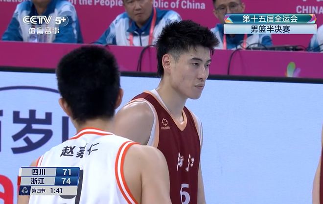 第二节,浙江前半段一直追分,一度落后6分,随着余嘉豪拿下2分,比分36-36追平四川,半场结束41-39领先浙江,单节赢了4分。
