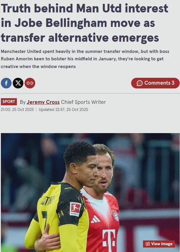 图片报本月早些时候表示曼联有意收购小贝林厄姆,而现在镜报确认了这个消息,他们声称红魔正密切关注相关情况,并希望在一月份租借这名中场。